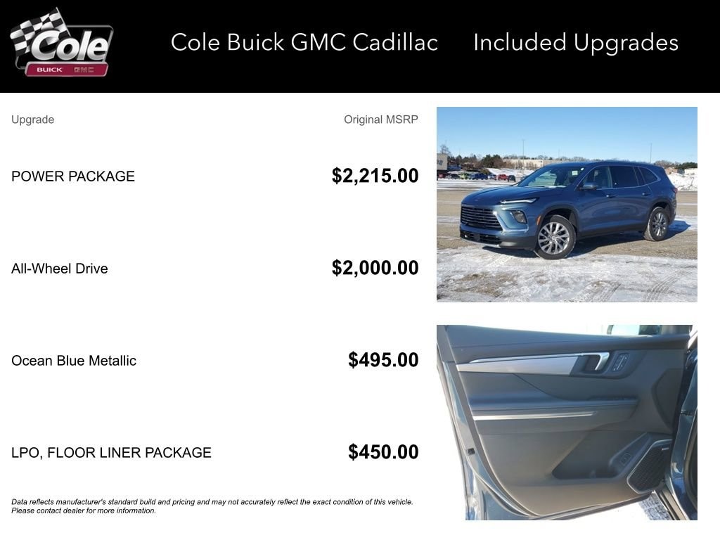 Price includes: $500 - Buick & GMC GM Financial APR & NCC Consumer Cash Program: $500 Allowance and 6.99% APR for 36 months. $30.87 per $1000 financed. Available to well qualified buyers who finance through GM Financial. XHD, NCC. Exp. 03/02/2026 WE DELIVER! BUY ONLINE-TEXT-EMAIL-CHAT-PHONE AND WE WILL DELIVER YOUR NEXT VEHICLE TO YOUR DOOR! FROM OUR SALES FLOOR TO YOUR DOOR! IT'S THAT EASY! Ocean Blue Metallic 2026 Buick Enclave Preferred AWD 8-Speed Automatic 2.5L DOHC