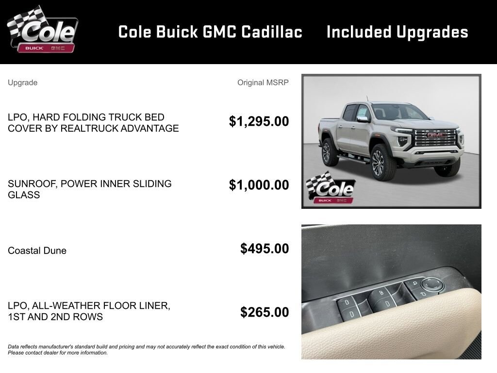Price includes: $750 - Purchase Allowance. Exp. 03/31/2026 WE DELIVER! BUY ONLINE-TEXT-EMAIL-CHAT-PHONE AND WE WILL DELIVER YOUR NEXT VEHICLE TO YOUR DOOR! FROM OUR SALES FLOOR TO YOUR DOOR! IT'S THAT EASY! All New Car Pricing Assumes GMS Employee Qualifications. Coastal Dune 2026 GMC Canyon Denali 4WD 8-Speed Automatic 2.7L I4 Turbocharged DOHC 16V LEV3-SULEV30 310hp