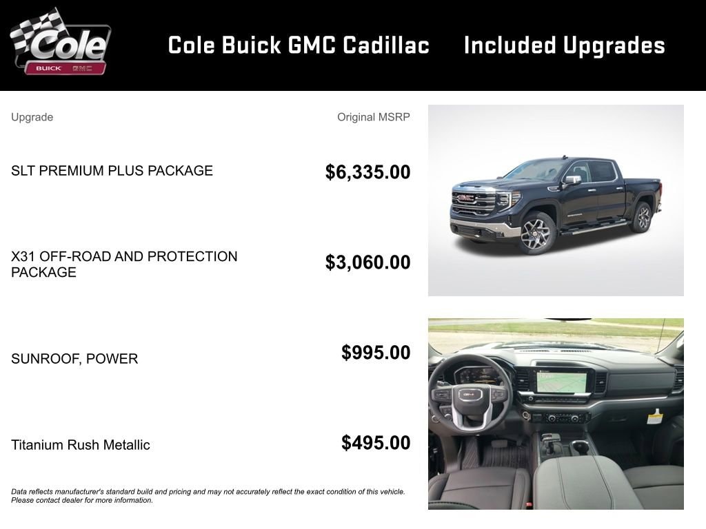 Price includes: $1750 - Buick & GMC GM Financial APR & NCC Consumer Cash Program: $1750 Allowance and 6.99% APR for 36 months. $30.87 per $1000 financed. Available to well qualified buyers who finance through GM Financial. XHD, NCC. Exp. 12/01/2025 WE DELIVER! BUY ONLINE-TEXT-EMAIL-CHAT-PHONE AND WE WILL DELIVER YOUR NEXT VEHICLE TO YOUR DOOR! FROM OUR SALES FLOOR TO YOUR DOOR! IT'S THAT EASY! Titanium Rush Metallic 2026 GMC Sierra 1500 SLT 4WD 10-Speed Automatic EcoTec3 5.3L V8