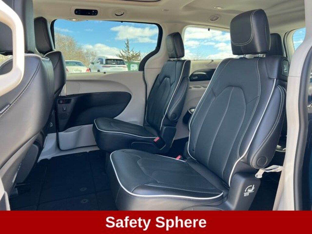 Safety is paramount in the Pacifica, with features like the Safety Sphere package, which includes advanced driver-assistance technologies such as Parallel & Perpendicular Park Assist, ParkSense Front/Rear Park Assist, and the 360 Surround View Camera System. These cutting-edge systems work together to provide you and your loved ones with the utmost protection.